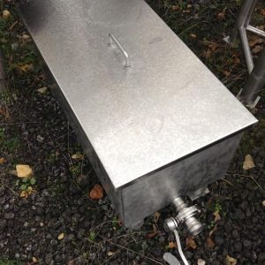 Dimensions HT: 1570 mm Diam: 830 mm H vidange: 440 mm Diam Sortie: 63.5 1 sonde de niveau 1 piquage 63.5 sur le côté
